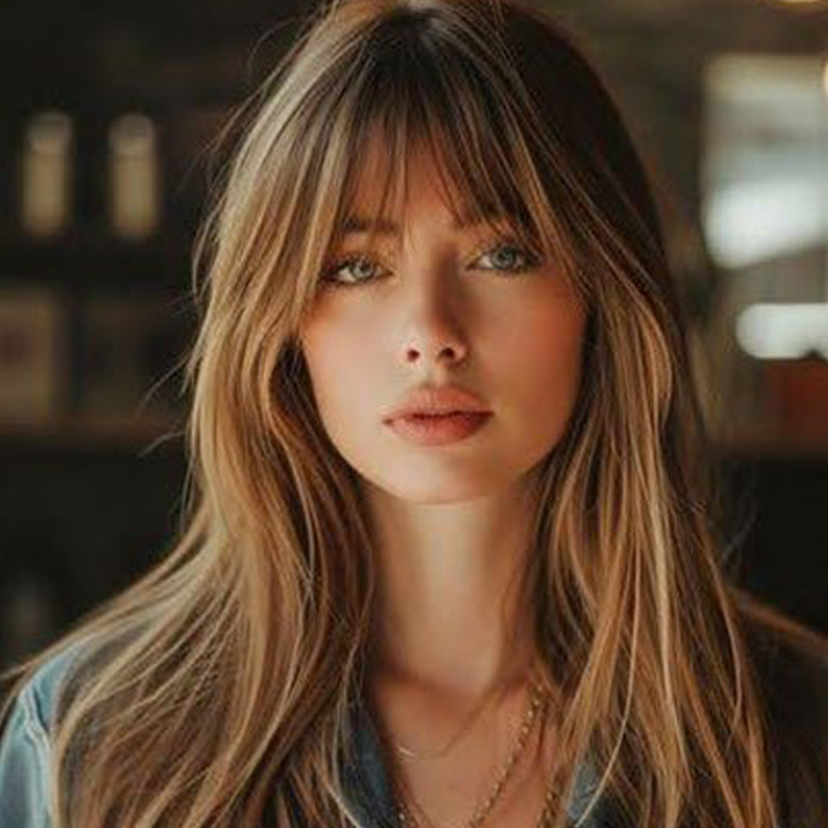 Curtain Bangs – Soft, parted bangs that blend into layers. Perfect for framing the face and easy to grow out.